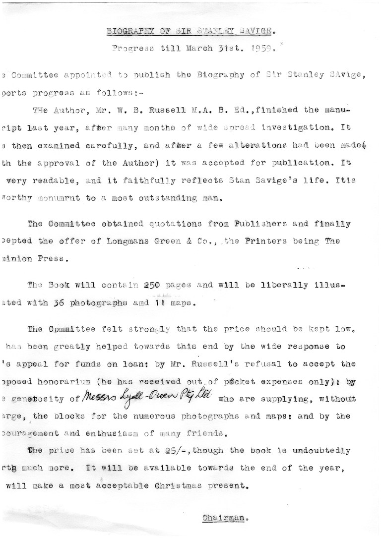 Lyell-Owen made plates for numbers of popular Australian histories including the deluxe hardcover, Land of the Southern Cross: Australia by Bryce Kinnear and the Australian Publicity Council and further assisted in publishing Victorian history in its provision without charge of production of plates for There goes a man; the biography of Sir Stanley G. Savige (the army officer and founder of Legacy) by William B. Russell, published by Longmans, UK in 1959.