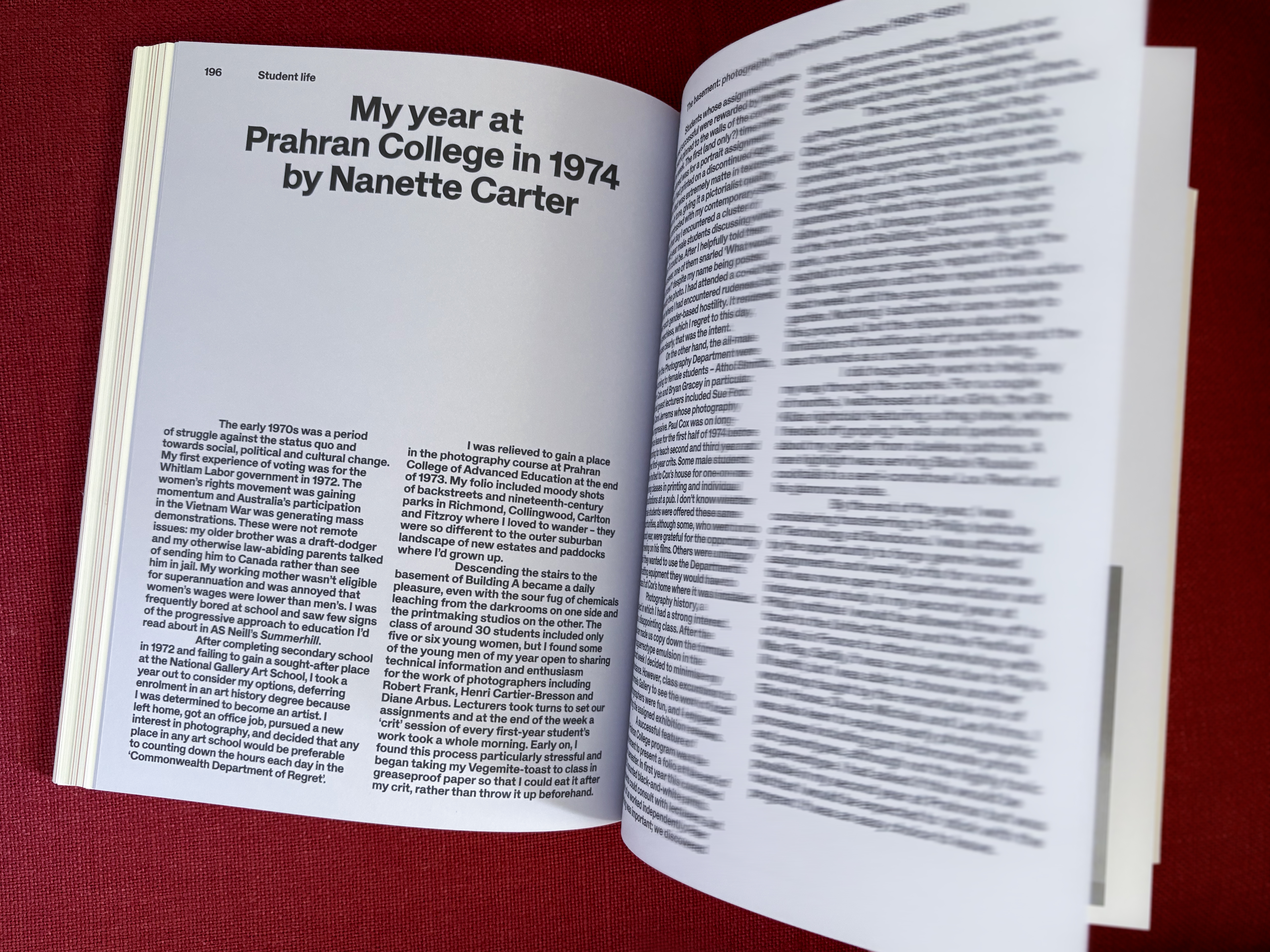 “Through a selection of insightful essays and first-hand accounts, this publication brings together a number of respected scholars, curators and artists. Helen Ennis provides cultural context through the back stories of some of the teachers at Prahran College; Gael Newton describes her observations as a young curator at the time; Daniel Palmer shares his research on the gallery scene between the 1960s and 1980s in Melbourne; Nanette Carter, James McArdle and Nicholas Nedelkopoulos recall their experiences as students at Prahran College; Adrian Danks writes about the influence of Paul Cox and his films; and Susan van Wyk interviews Bill Henson, one of the most renowned artists to come out of the College. The book includes a wonderful array of photographs and student portfolios, some of which haven’t been seen since they were produced and exhibited in the 1970 and early 1980s.”