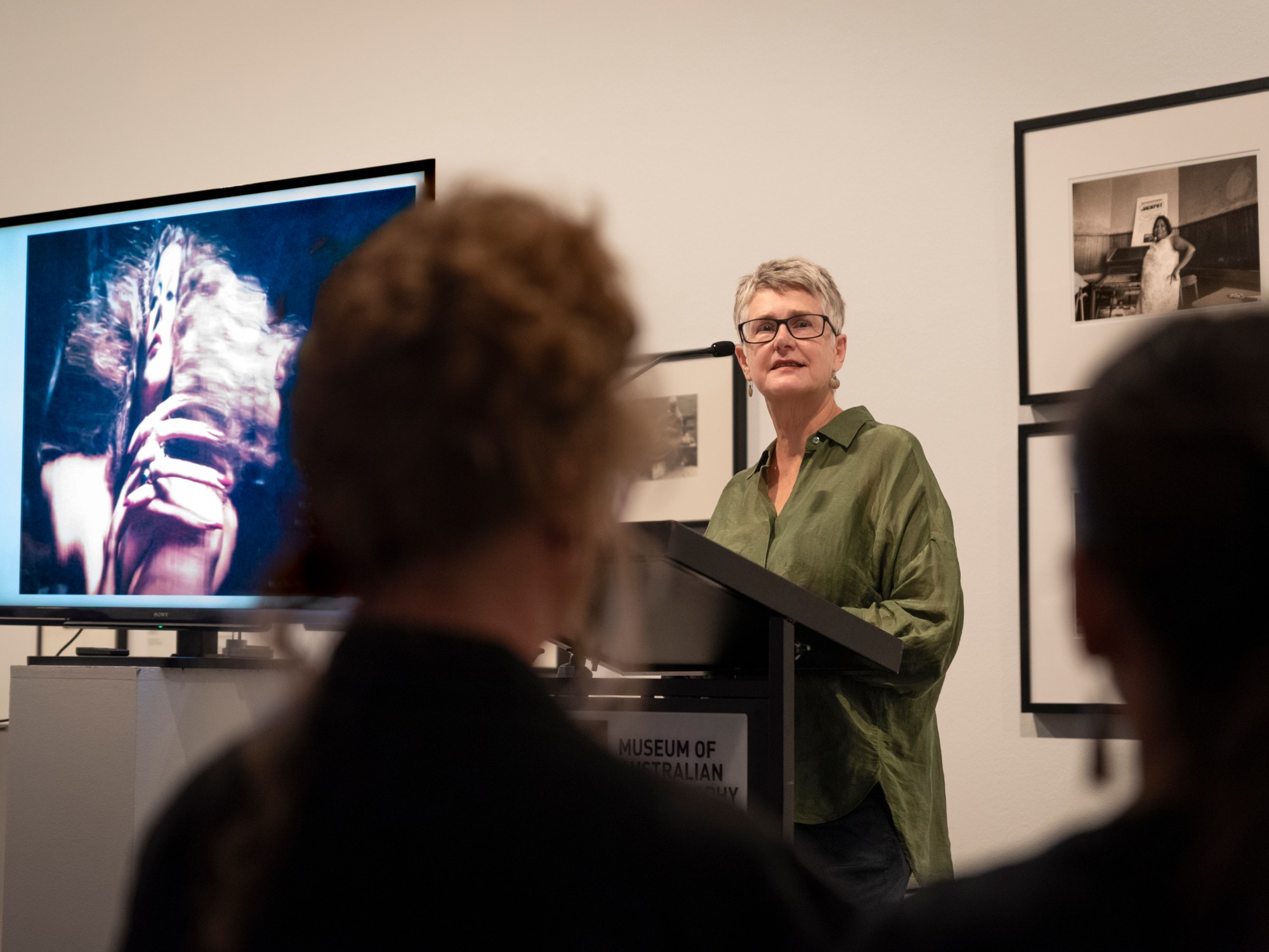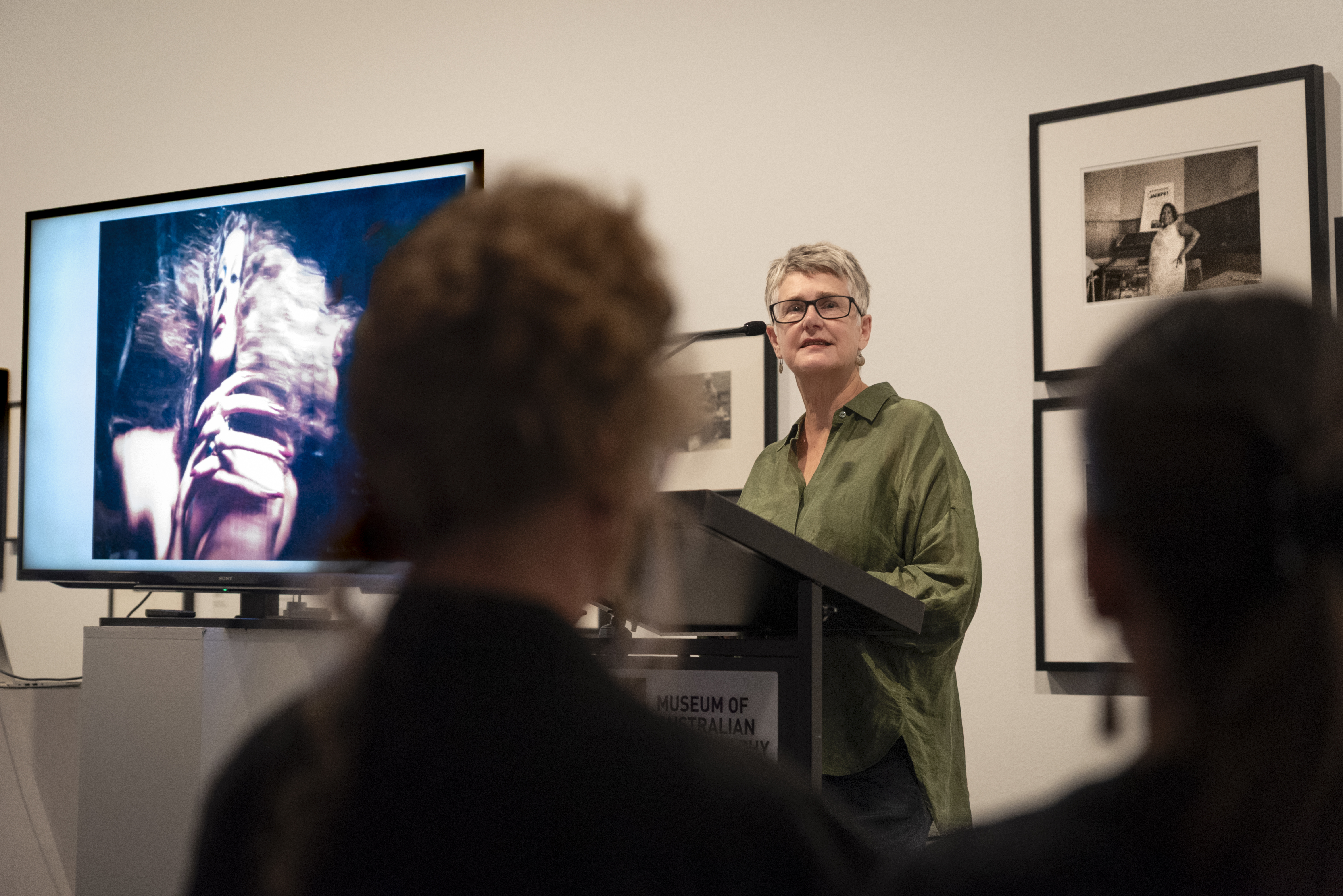 “These are just a few of my propositions for curating as composting, but where I want to end is with a statement from the late, great, Sue Ford, who, as you know, was working in a period before this. When she came to photography wanting to use it as a a creative medium of expression, she couldn’t go to Prahran, there was no such thing. But she was someone who in my life I admired so much for her endless experimentation, her never wanting to stay in a fixed position artistically. So in 1995, she wrote about her collages, and she said how she enjoyed—and I’m quoting her—‘finding the pieces, putting them back together, blowing them up, fragmenting them again, making new juxtapositions and unfixing them. So thanks to Sue for a new metaphor which I’ve latched onto now—‘composting’ aside for a moment—and that is unfixing.”