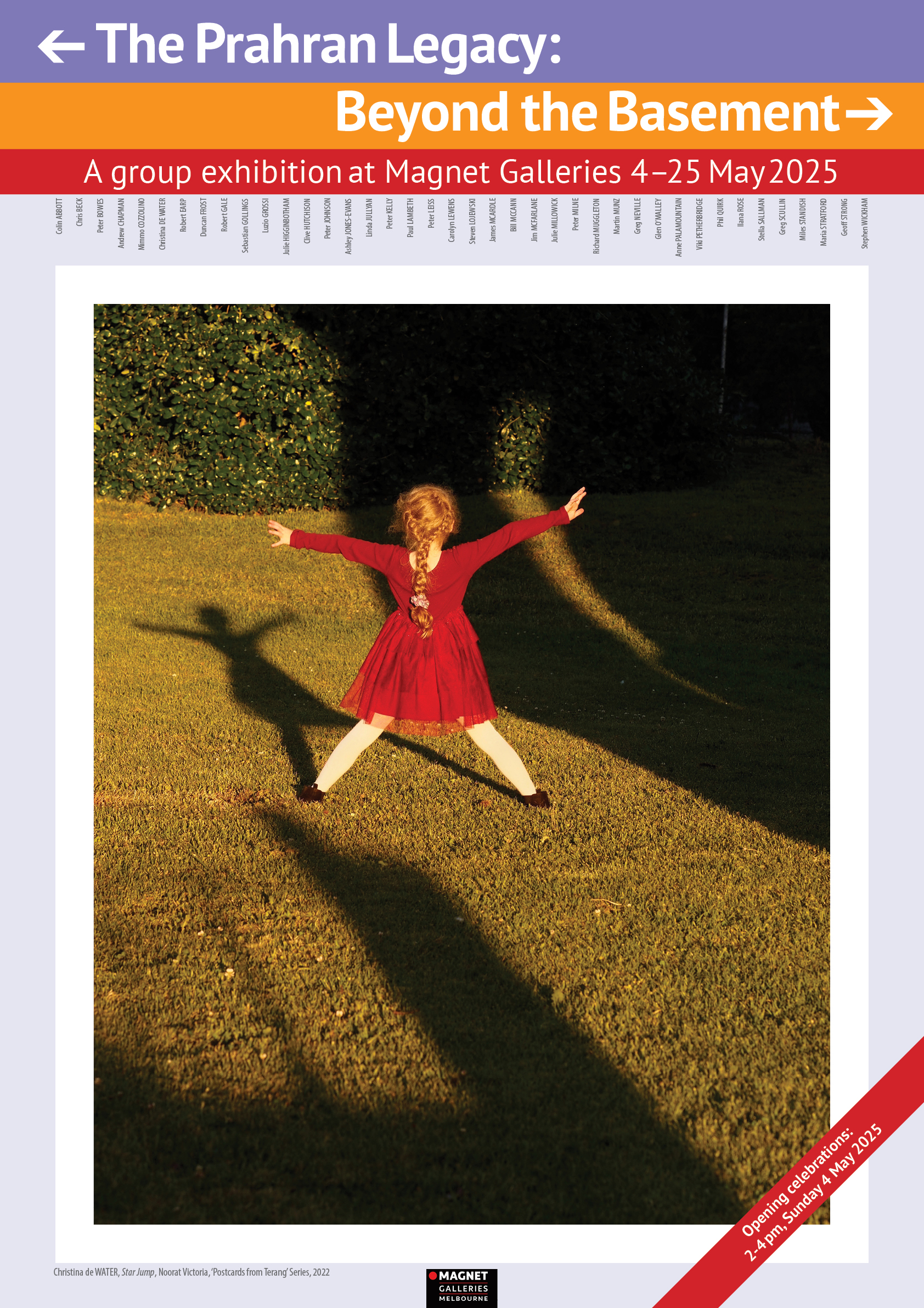 You are warmly invited to join us at the opening of an exhibition featuring works by 40 alumni who studied photography at Prahran College between 1968 and 1991. We are excited to share our recent work showcasing the diverse artistic talents that emerged from this influential institution. Each of us will exhibit one or more pieces, most available for purchase. We hope you and your friends will join us for this celebration. Opening Reception at Magnet– Sunday, 4 May 2025. 2:00pm–4:00pm. Refreshments will be served.