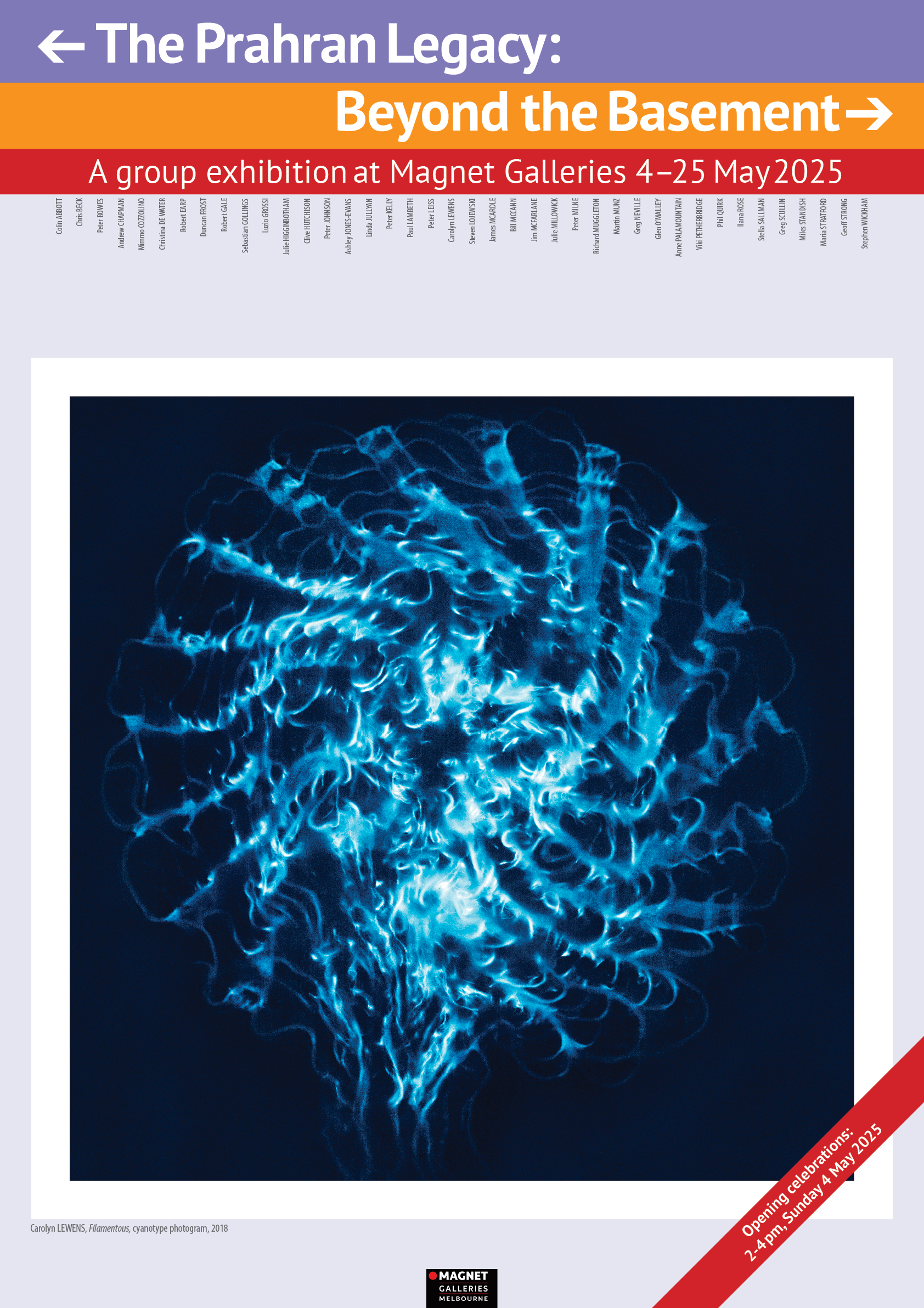 The Prahran Legacy: Beyond the Basement show extends on a 2014 exhibition Prahran 40, conceived by Prahran alumnus Colin Abbott and shown by Michael and Susanne Silver of Magnet Galleries.