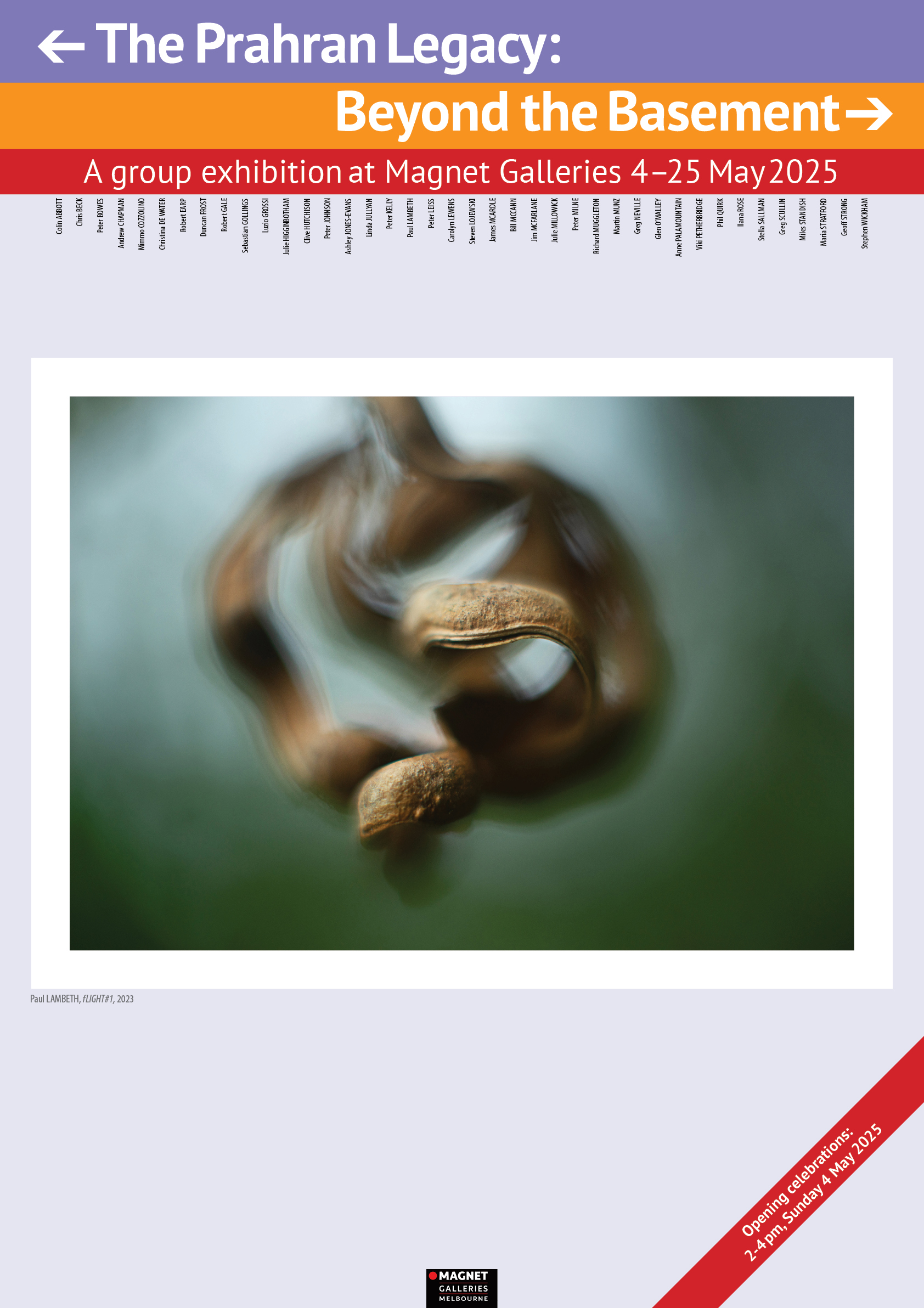 The Prahran Legacy team has secured a new exhibition for May 2025 at Susanne and Michael Silver’s MAGNET Galleries, Melbourne. Curated by Merle Hathaway, assisted by designer Mimmo Cozzolino, coordinator of 1980s alumni Ilana Rose, sponsor and gallery liaison Colin Abbott, and James McArdle (words, Prahran Legacy blog). Phil Quirk contributed to our meetings from Sydney, and Peter Leiss continued his video interviews with alumni.