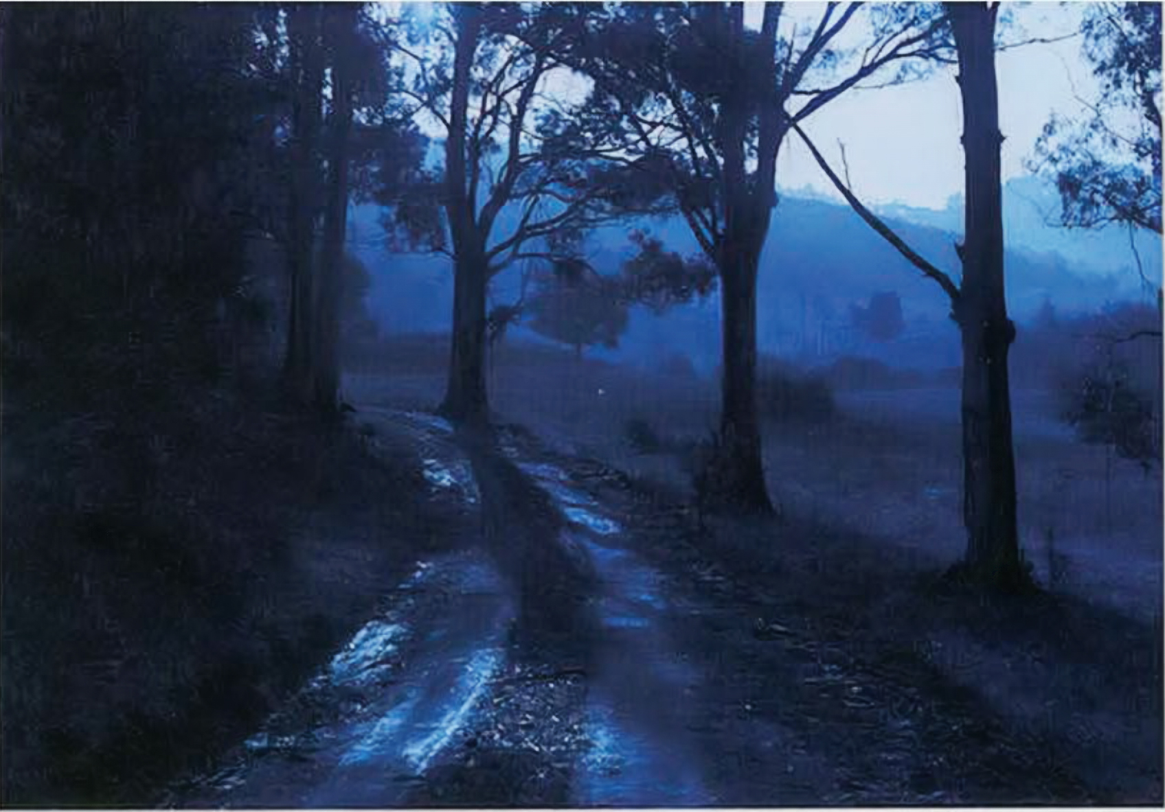 Her 2004 solo Foreboding, held at both Dickerson Galleries in Sydney (est. 1992) and Melbourne, expanded these themes, cementing her reputation as a photographer who could conjure psychological intensity through atmosphere alone. Reviewer Holly Evans (Sunday Age, 14 April 2004, p.2) noted her use of “coloured filters to enhance the drama of the Australian landscape”