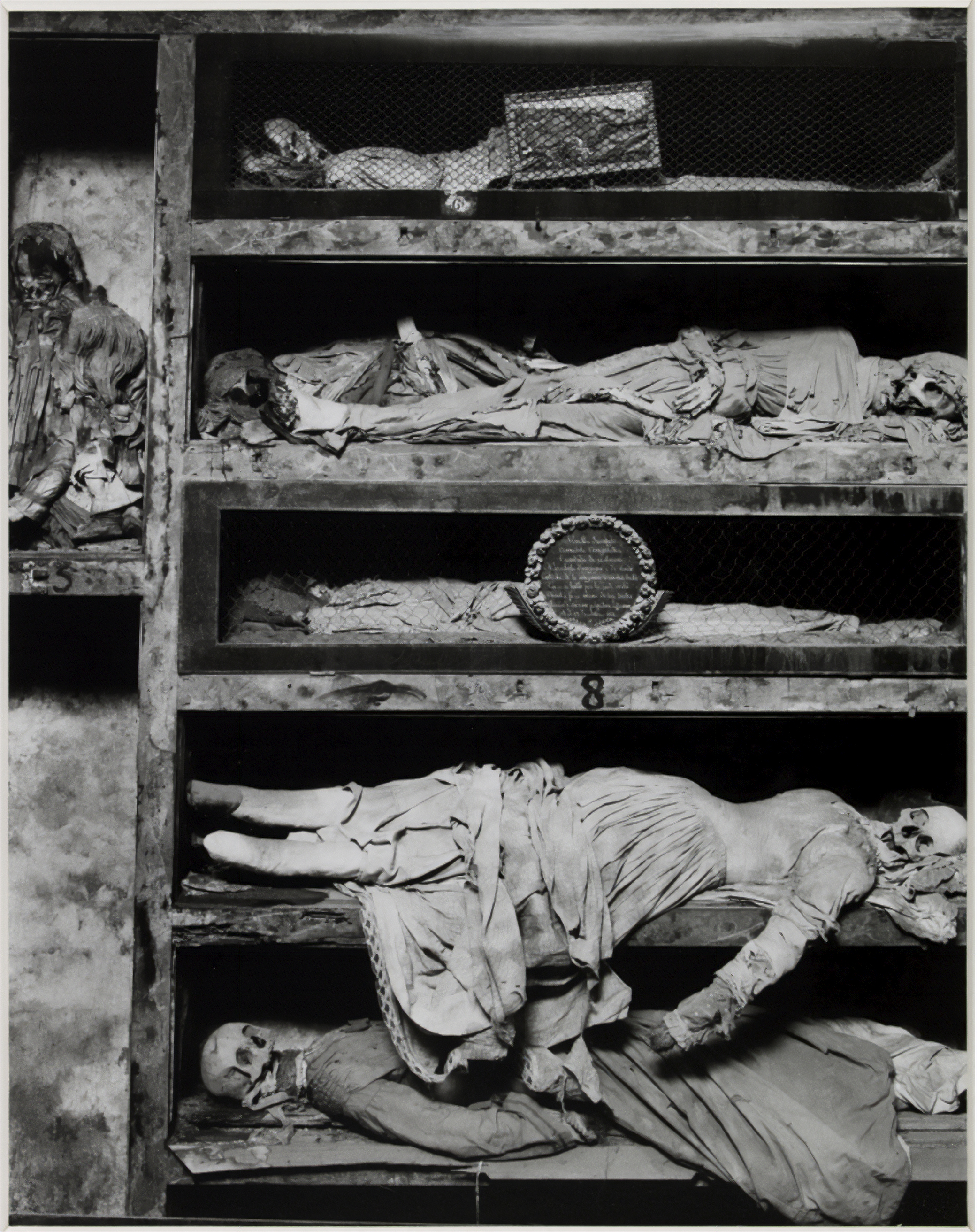That claim might have been disputed when in March 1982 Visibility opened its first show. Cryptic Cadavers was by Martin Lacis who studied, albeit briefly, at Prahran. It featured a series taken in the catacombs of Palermo, a subject previously covered by one of the most thoughtful and poetic of the French Réalités magazine photographers of the 1950s and 1960s, Gilles Ehrmann, who in 1960 started a series of photographs of mummified bodies in the catacombs of Palermo for an unpublished book, Œdipe Sphinx (Oedipus the Sphinx), with the poet Ghérasim Luca. Incidentally, Ehrmann’s series was belatedly exhibited at Galerie Agathe Gaillard, Paris, in 1981, the year before Lacis’s. In an interview with Hervé Guibert, Ehrmann explained: